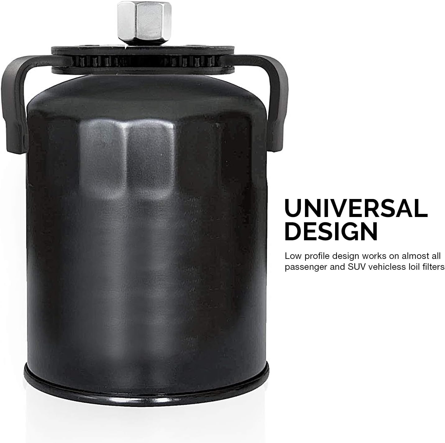 - [UNIVERSAL DESIGN]: Universal filter wrench works on most passenger and SUV vehicle oil filters ranging in size from 2-1/2” to 4”.