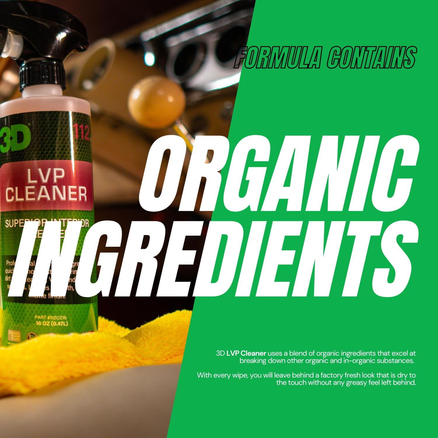 3D LVP Interior Cleaner - Removes Dirt, Grime, Grease, Oil & Stains from Leather, Vinyl & Plastic - Great for Seats, Steering Wheels, Door Panels, Dashboards - Car, Office, Home Use 16oz.