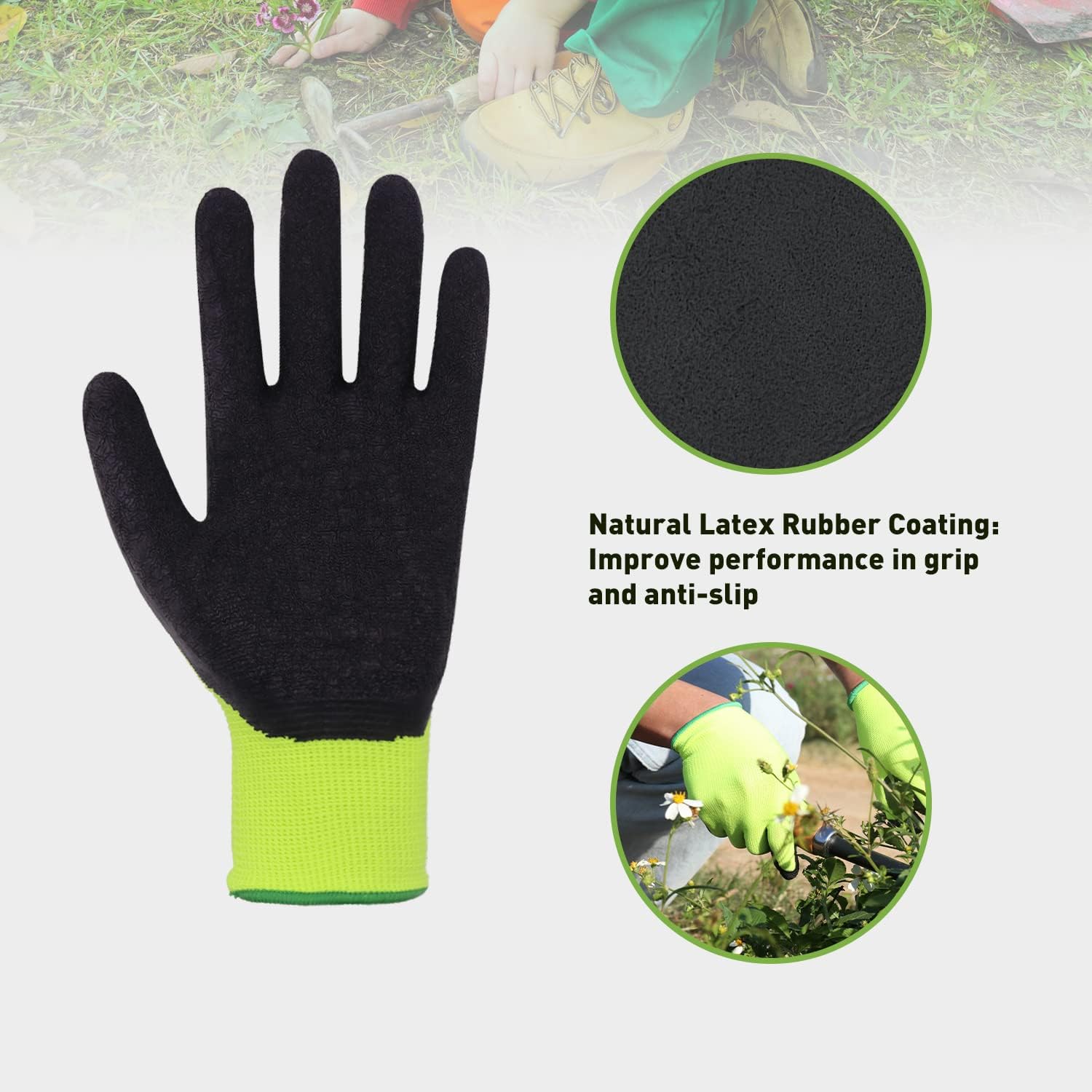 - Kids rubber gloves with natural latex foam rubber coating for water resistant and keeps hands cool and dry