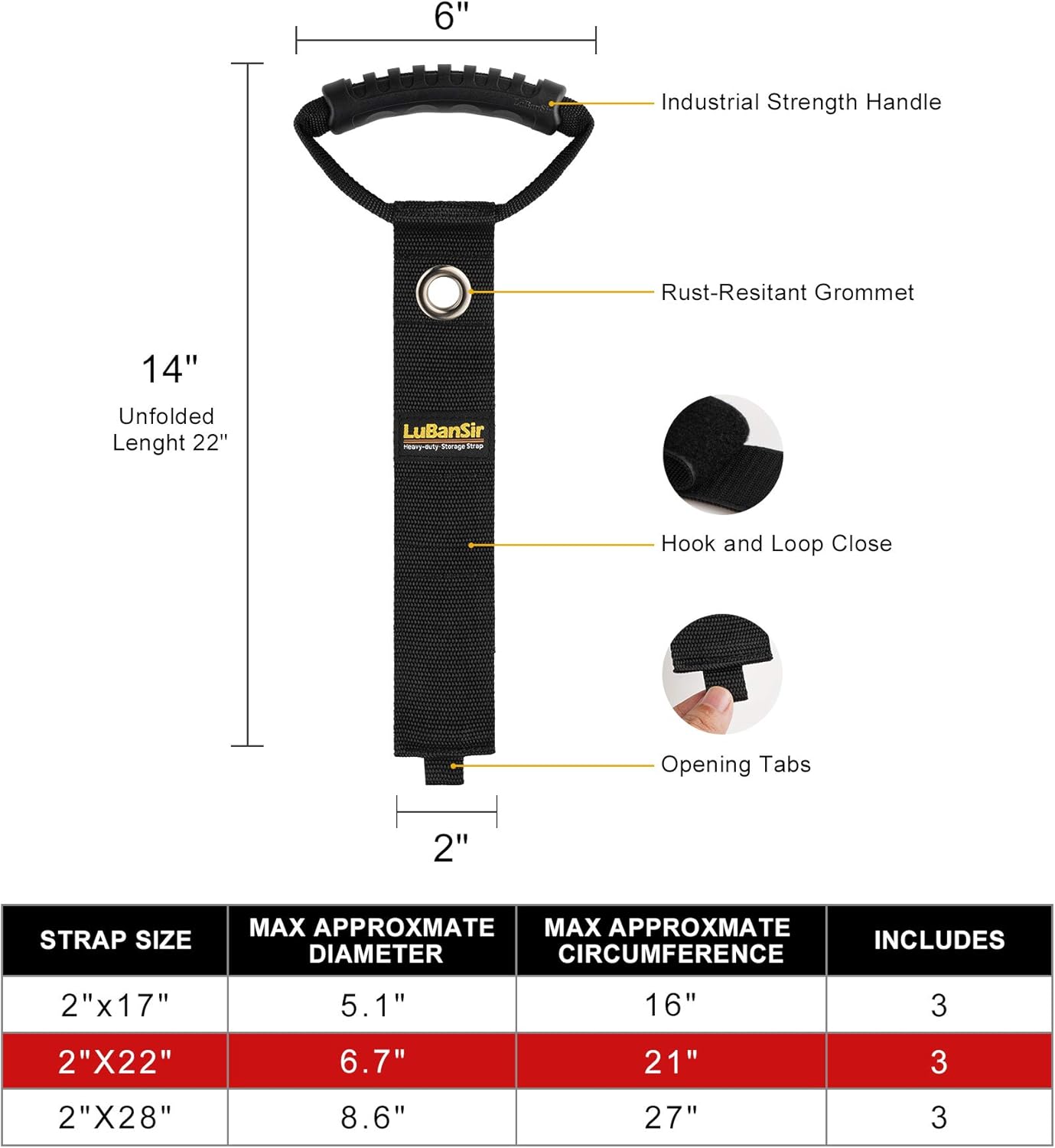 LuBanSir 3 Pack Extension Cord Organizer, 22" Portable Hook and Loop Storage Straps with Grommet Fit Extension Cords, Cables, Ropes, Garden Water Hoses Carrying and Hanging