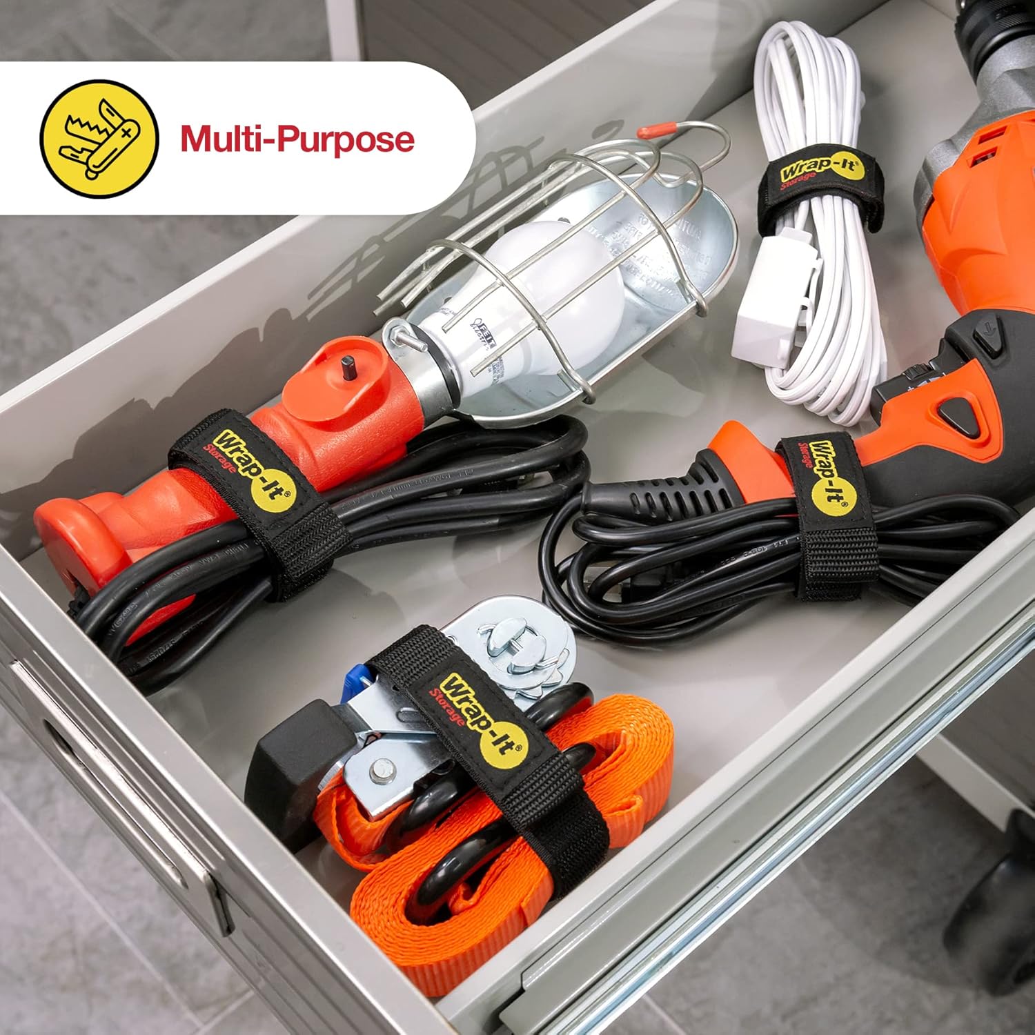 - YOU GET IT, RIGHT? - These are hook and loop straps to help organize cords, cables, and much more. They won't teach you how to ride a bike, or help you remember the titans, but they will help you stretch your limited motivation to tidy up your garage, shed, boat, RV, and home.