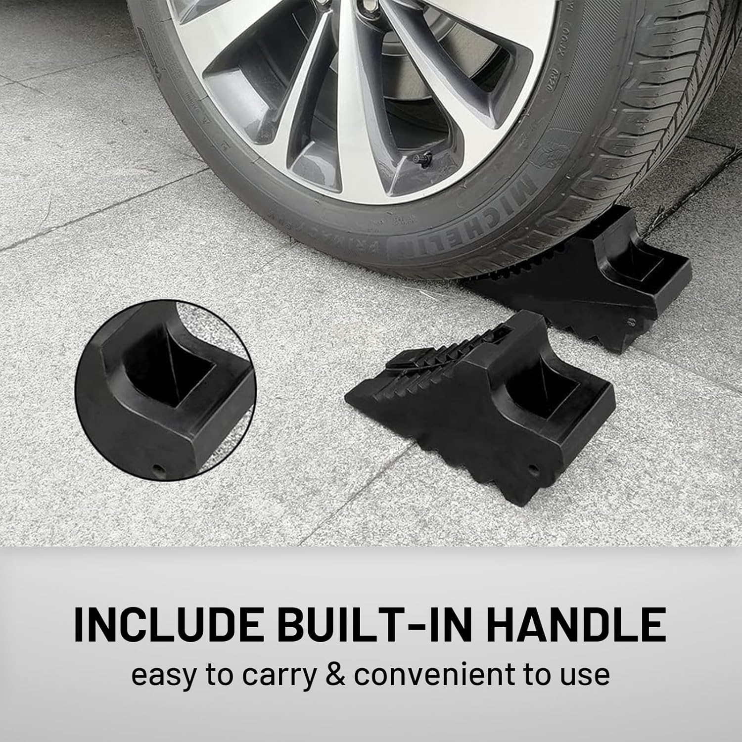 - Convenient: Our wheel chock block with high grip edges, is convenient to use and transport. Anti-slip design help the chocks stay in place