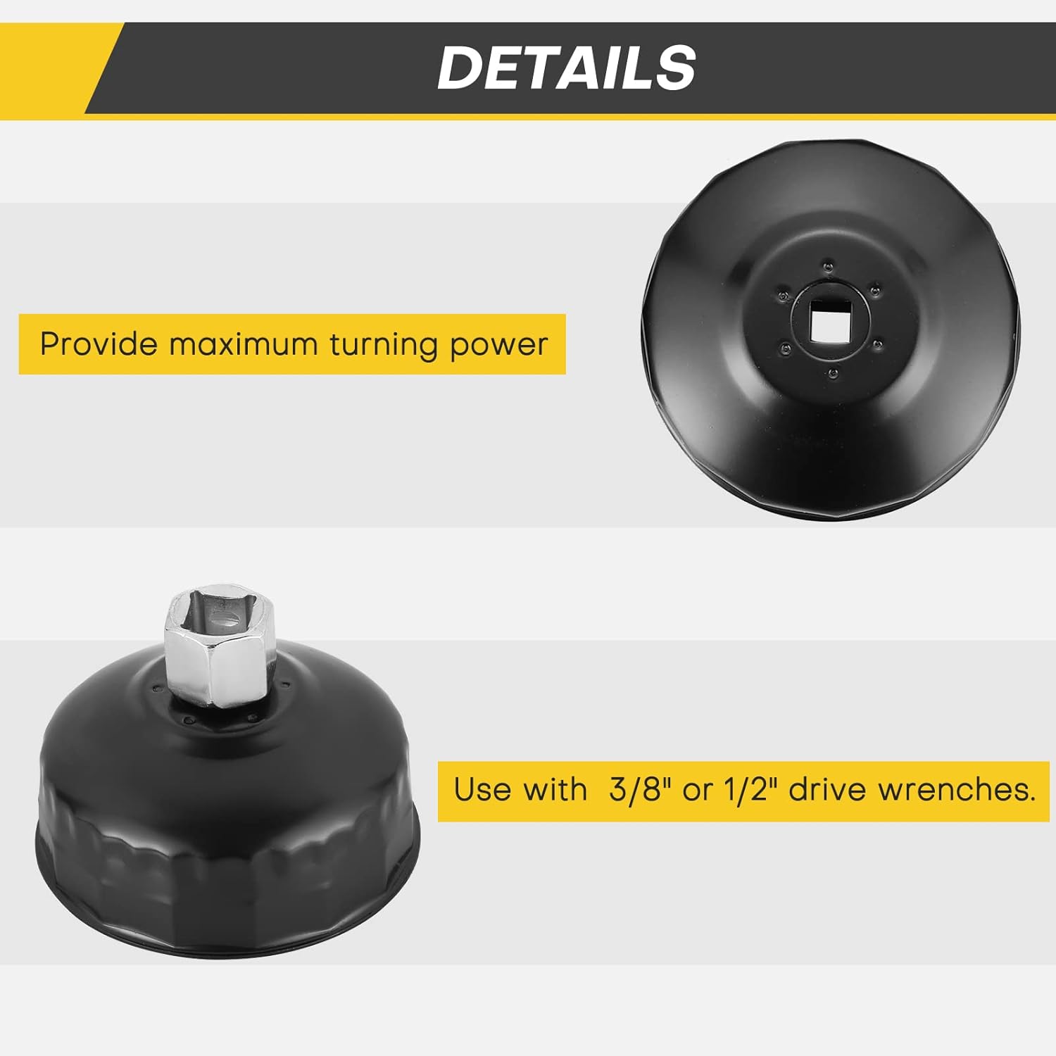 - Function: The oil filter socket set is designed for removing and installing oil filters. And the oil filter wrench set can be used with 3/8" or 1/2" square drive wrenches.