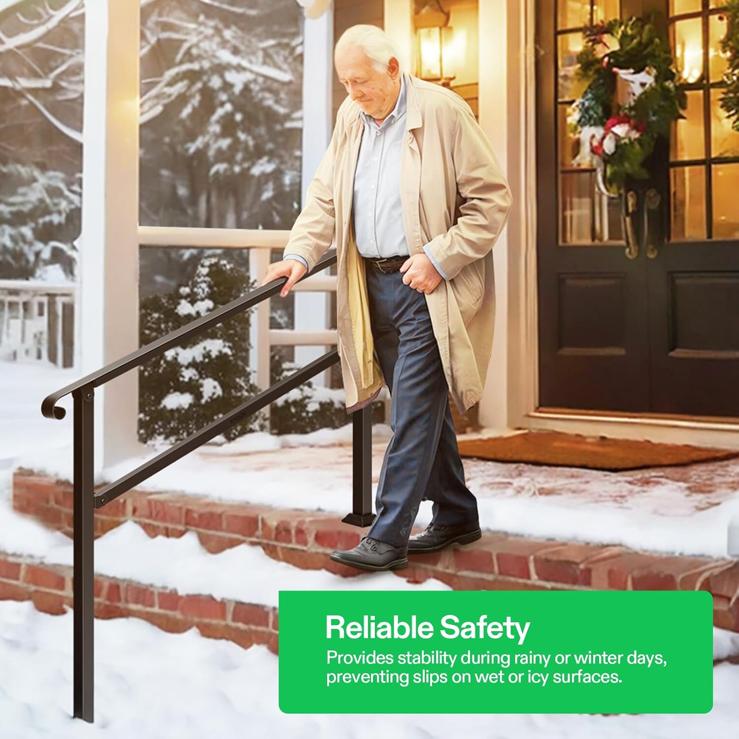 - Sturdy & Durable: Made of high-quality iron for stability and durability, this handrail is capable of withstanding harsh outdoor conditions, including rain and snow; Thick black powder coating reduces chance of peeling off, rust, scratches, and discoloration, also making the railing easy to maintain and clean