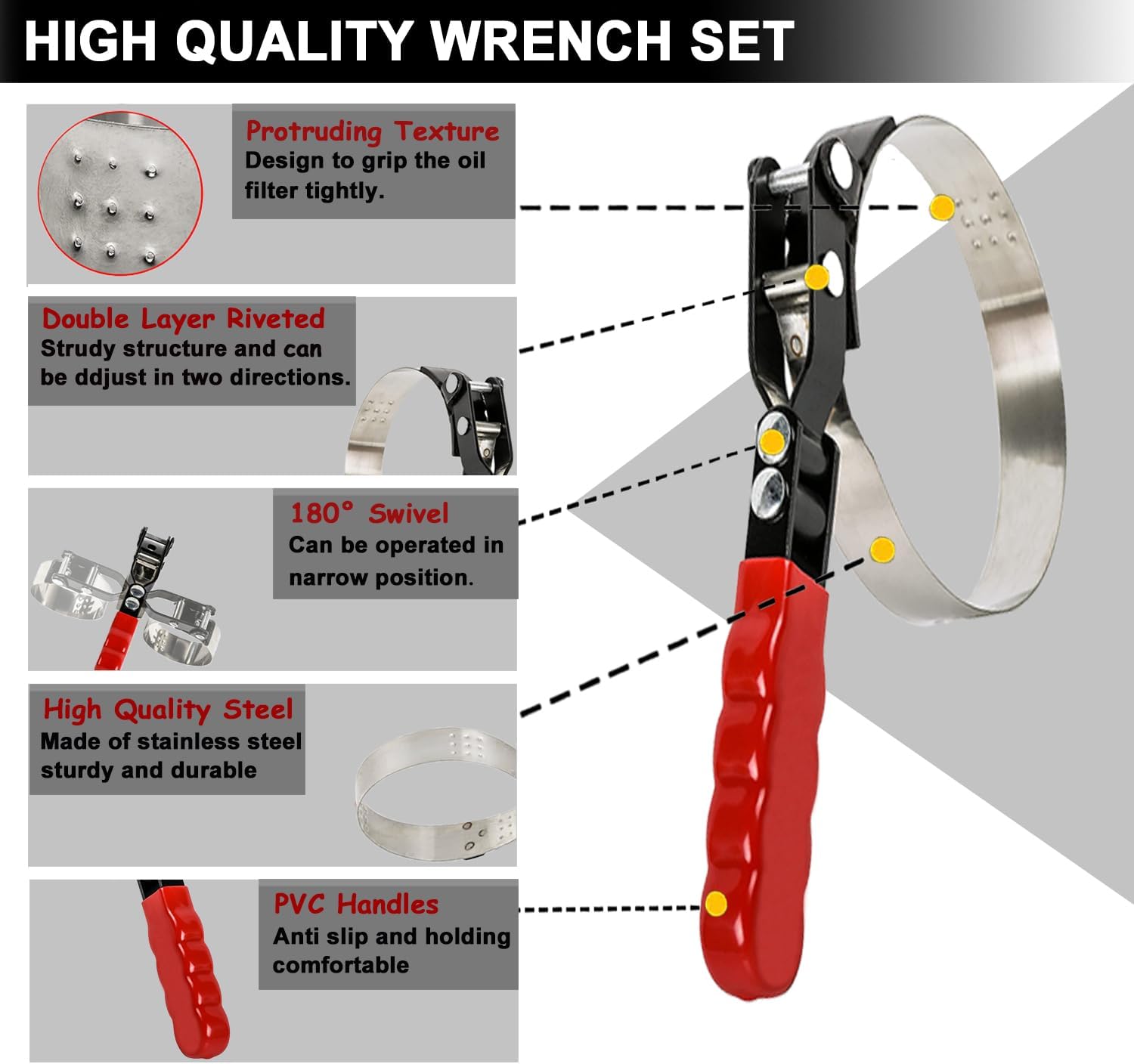 - Great Support: Don't struggle with stubborn filters any longer - get our oil filter wrench set today and make oil changes a hassle-free task! pls contact us if you have any problems, we will do our best to solve it.