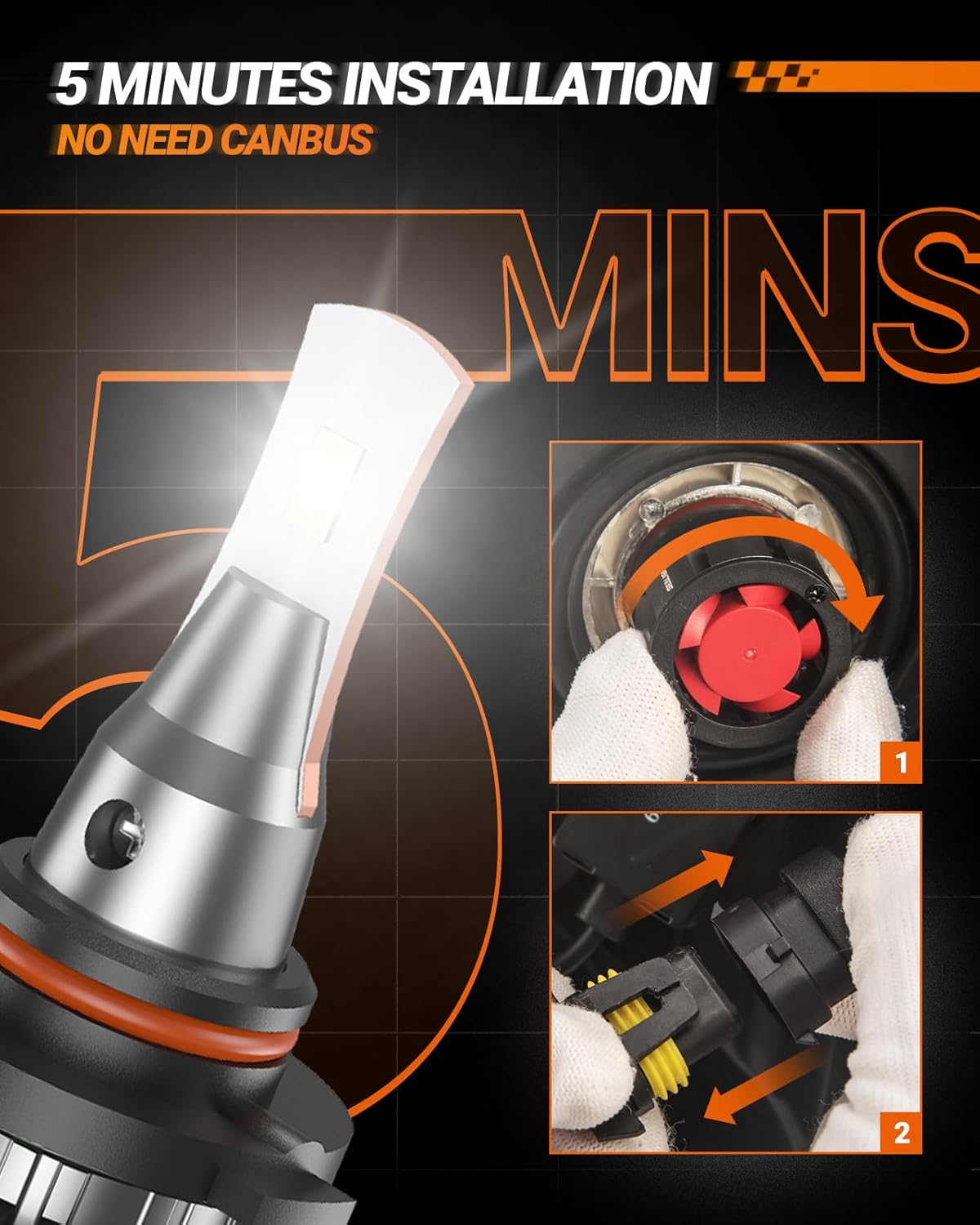 - 【5 Mins Install】Designed to match halogen size with a mini 1:1 fit, our 9005/HB3 9006/HB4 led light bulbs allow straightforward installation into factory sockets without modifications. Just plug and play