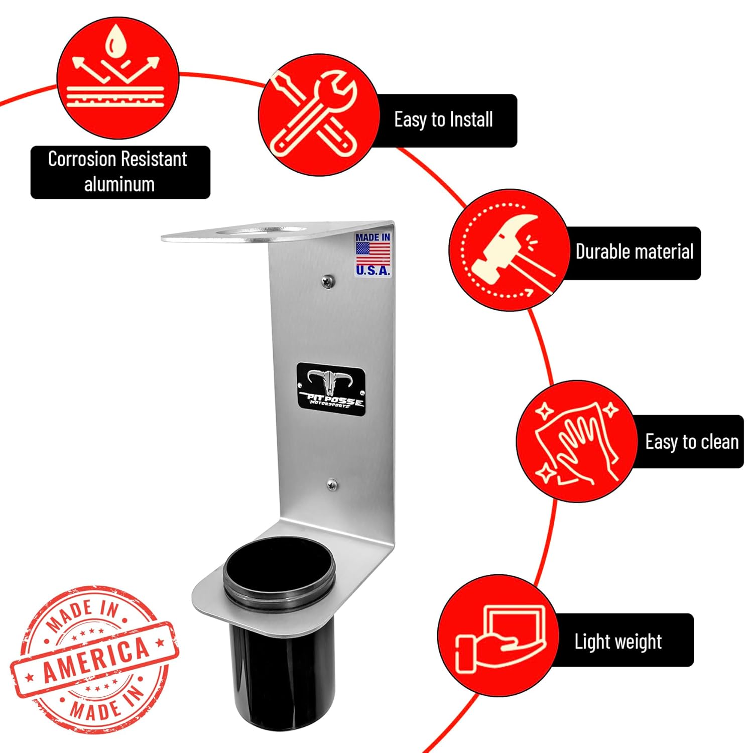 Pit Posse PP3364 Aluminum Oil Funnel Holder Storage Rack - Enclosed Trailer Garage Shop -Made in USA- Wall Mount Fluid Drain Funnel Caddy Hanger Automotive Organizer Removable Spill Free Universal Fit