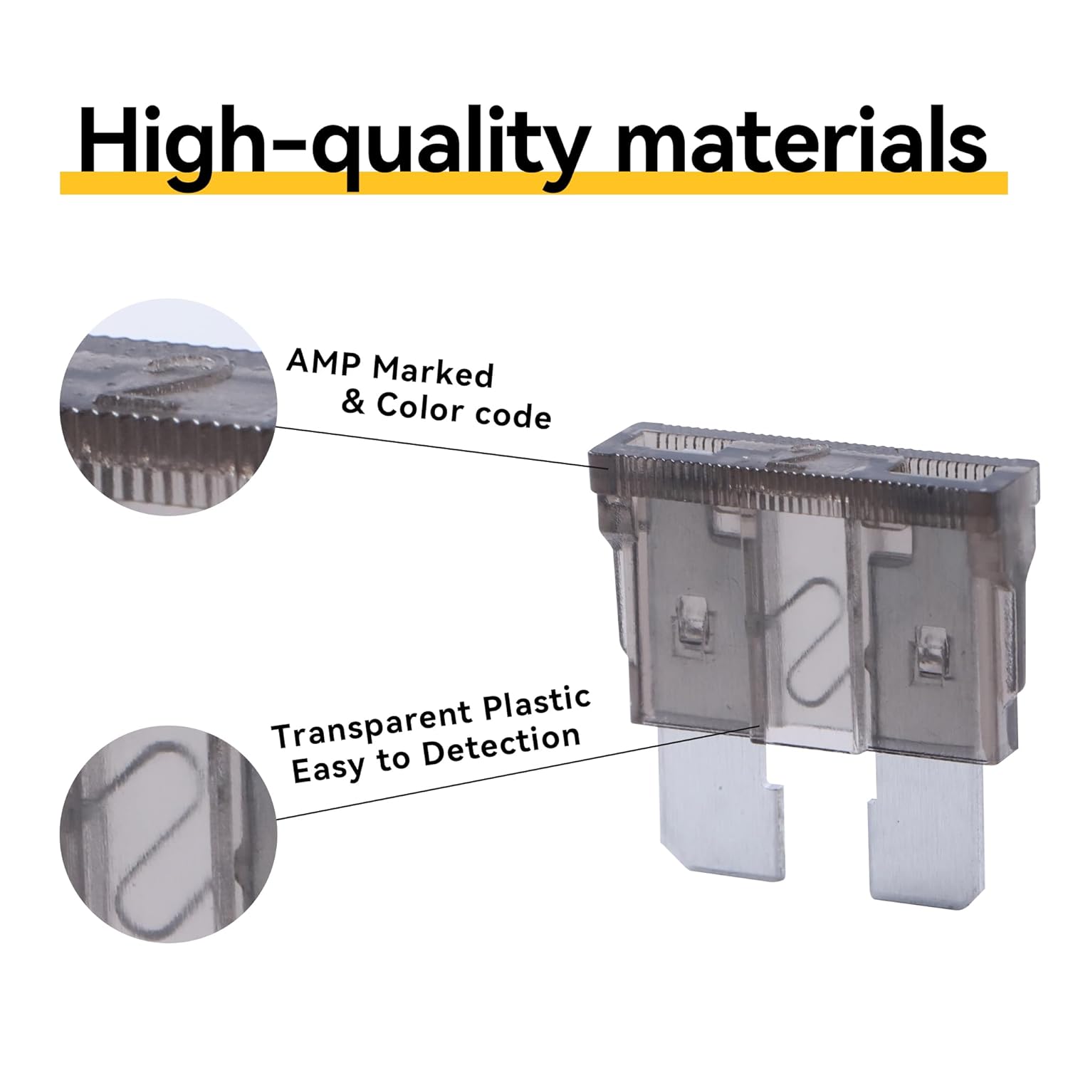 - CONVENIENT DETECTION - The plug-in blade fuses are made from transparent PES with zinc alloy inserts and transparent housings for viewing the fuse link status and quick detection of a blown fuse.