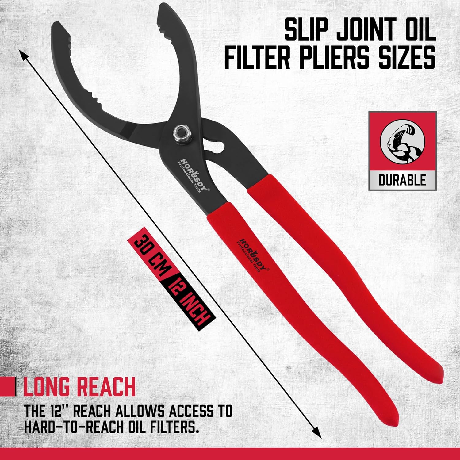 - [Professional Tools]: 12" Adjustable Oil Filter Pliers, Soft, non slip handles provide extra stretch and leverage in narrow areas.