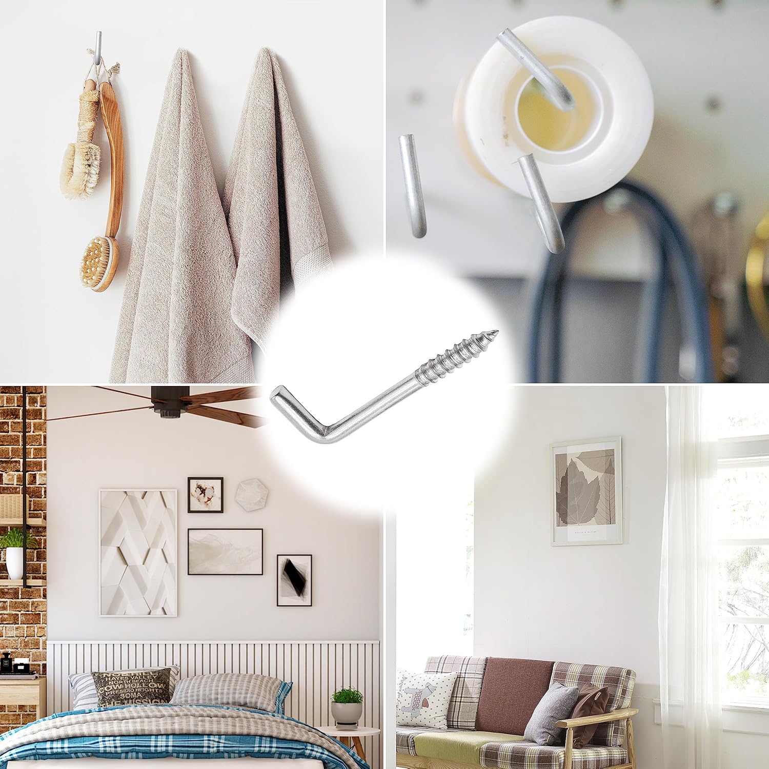 304 Stainless Steel M5 Screw-in Hooks 60 Pcs,7 Shape Screw Hooks,Right Angle Medal Hooks l Shaped Screw in Hooks for Hanging