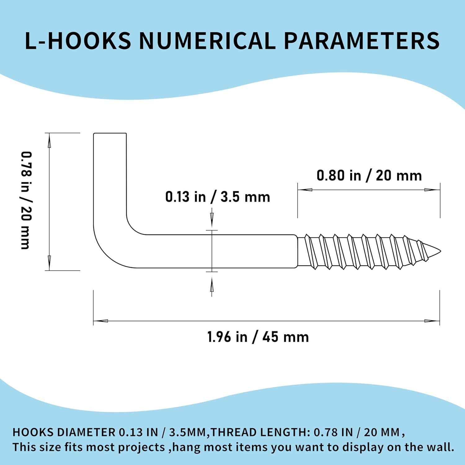 - 【Product Size】Screw Hooks DIameter 0.13 in / 3.5mm, Full Length: 1.96 in / 45 mm, Thread Length: 0.78 in / 20 mm.