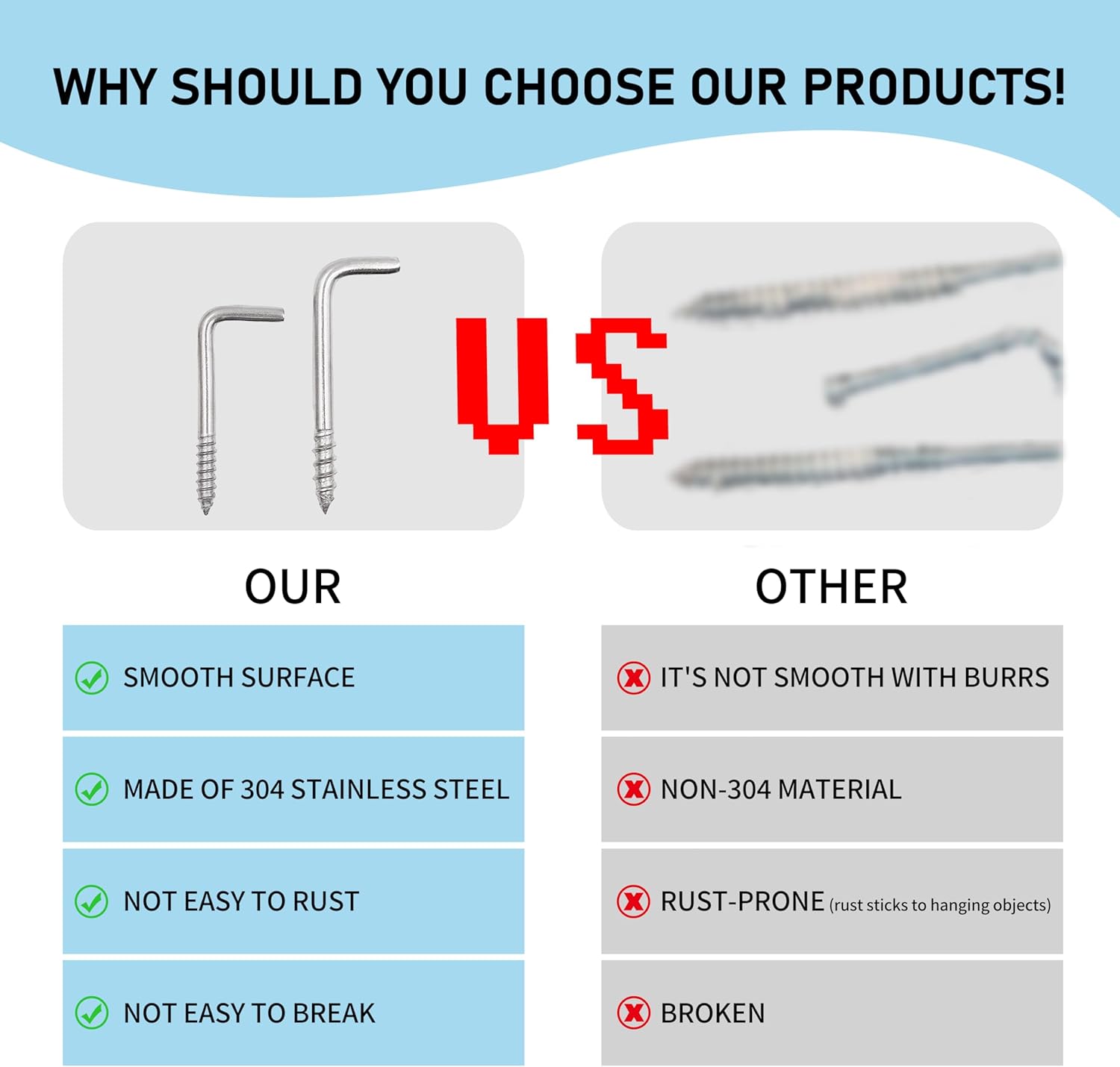 - 【Please note】 The threaded end is sharp, but you can pre-drill holes in the wall/post/board when installing, so you can easily screw the hook into the holes manually or with a tool.