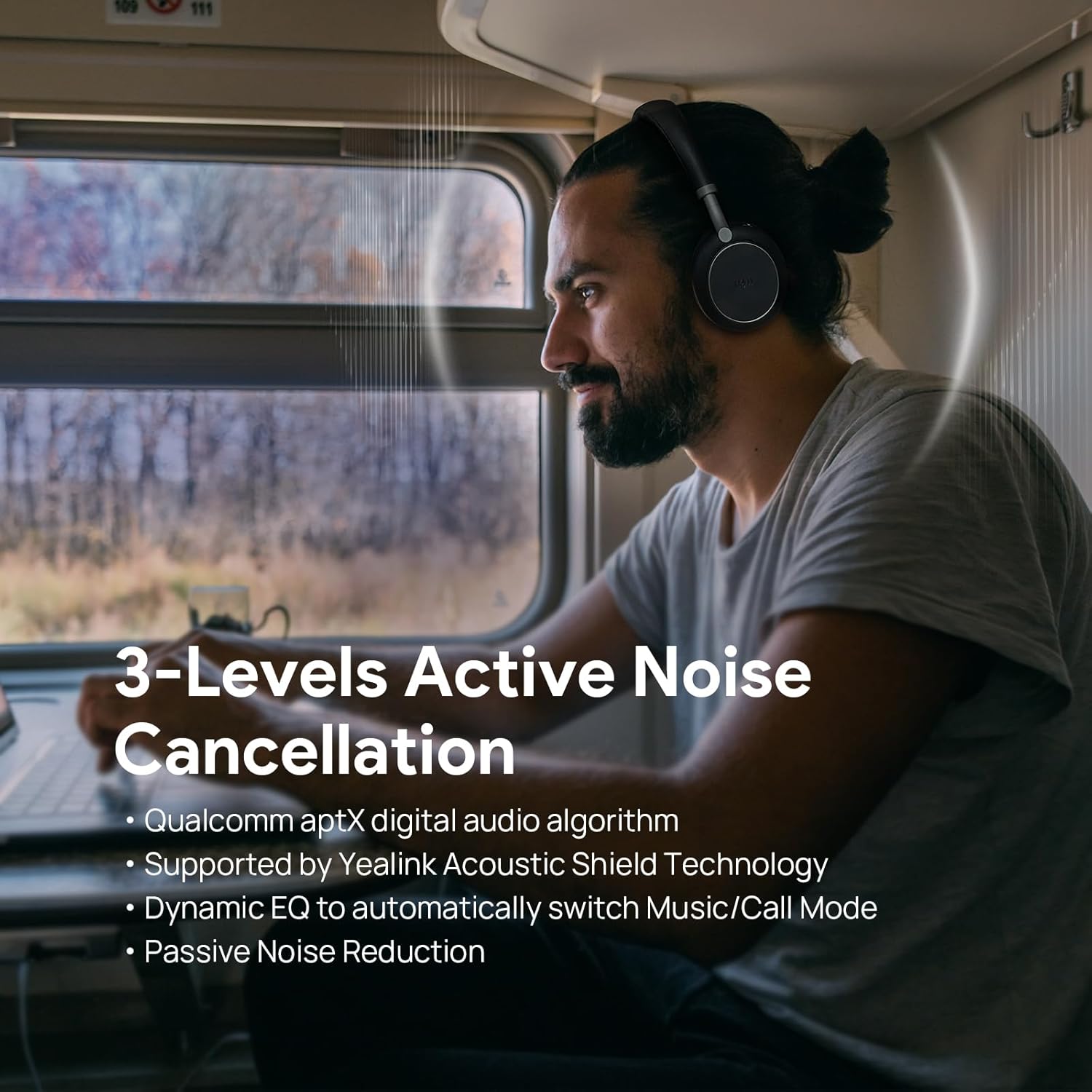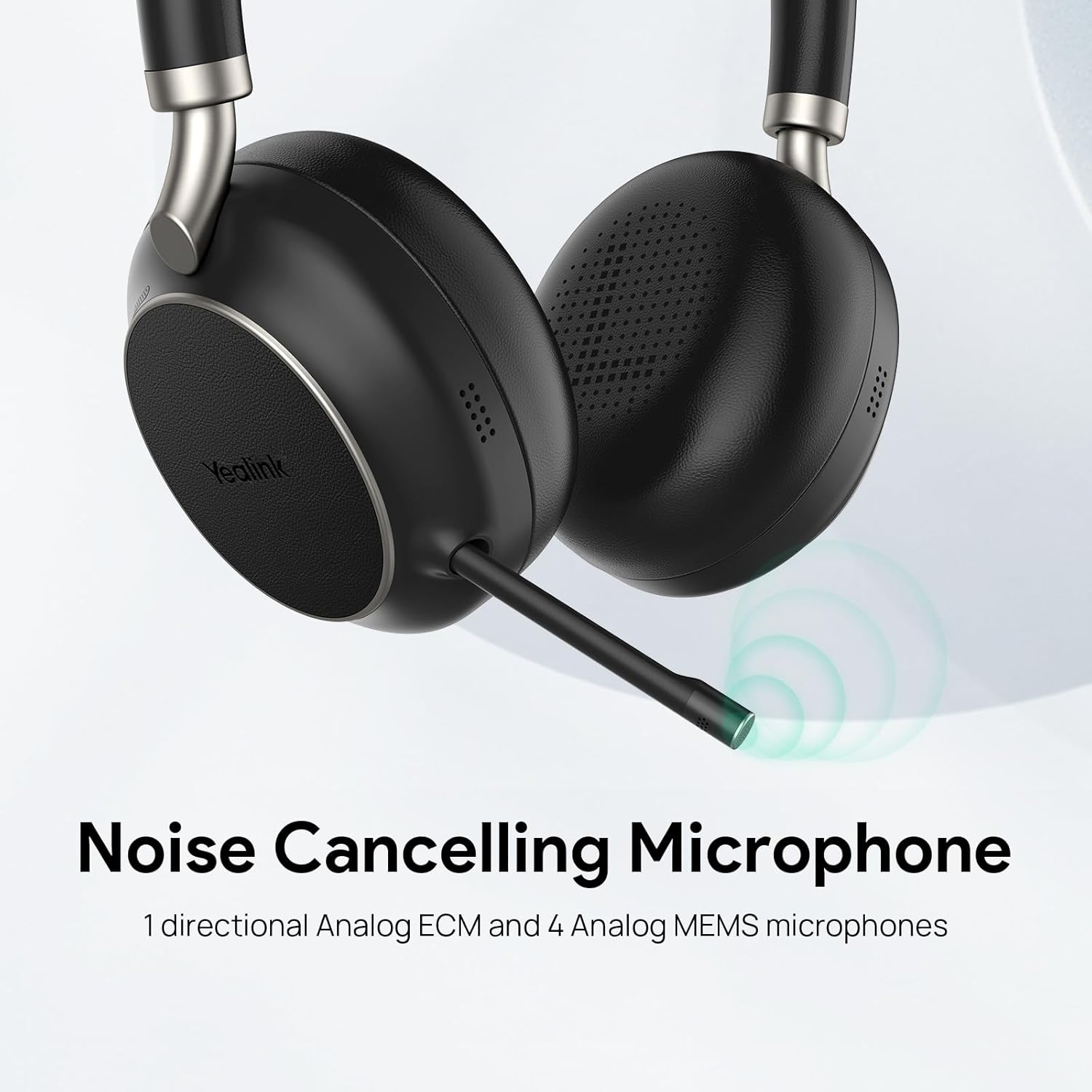 Yealink BH76 (2022 Old Edition) Wireless Headset Active Noise Cancelling (ANC) Bluetooth Headphone with Retractable Mic-Boom, Teams Certified On-Ear Headphone, up to 35h Talking Time, USB-A Dongle