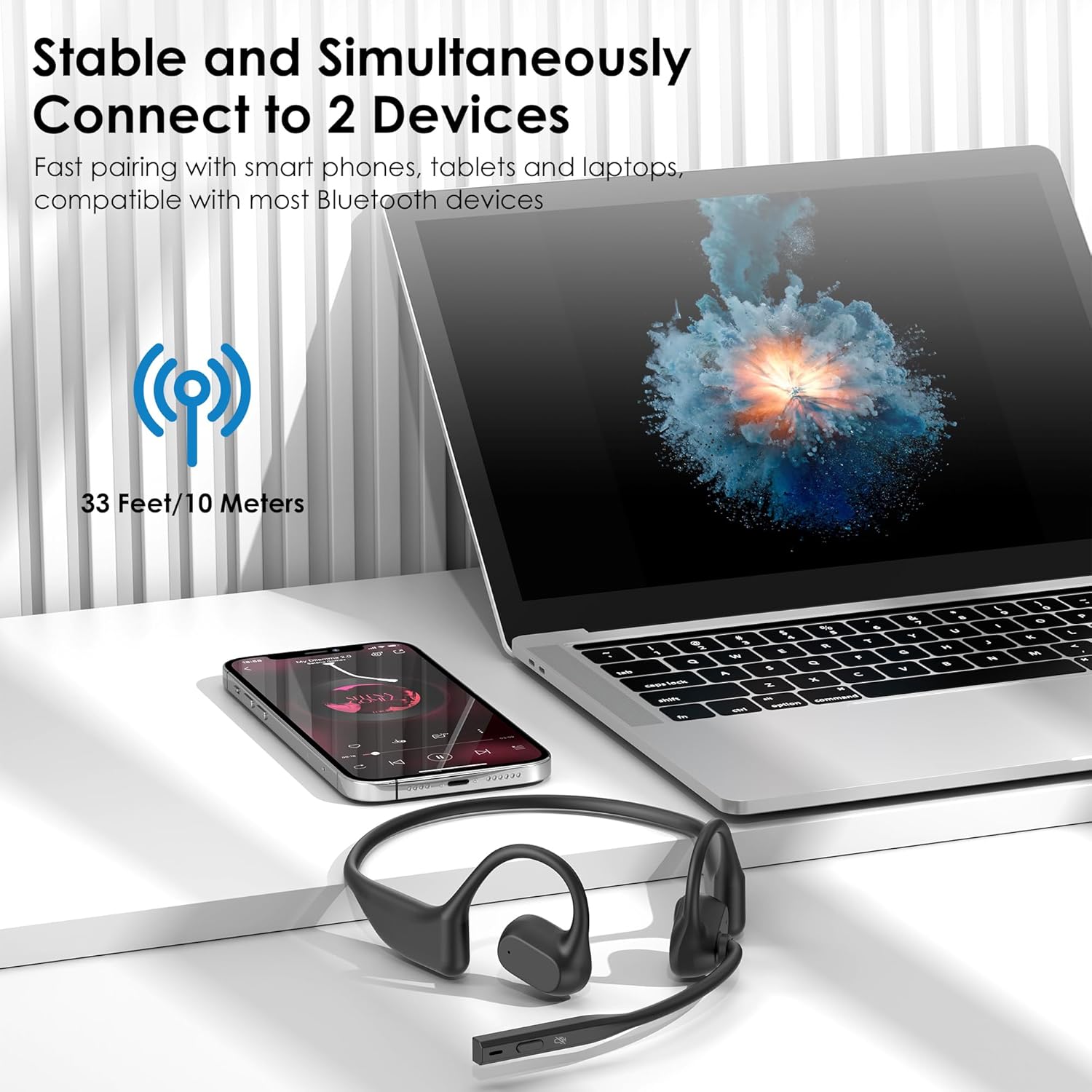 - Open Ear Headphones: Different with traditional design, our open ear bluetooth headphones wonโt cover your ears very tight so can wear long time and still feel comfortable. The bluetooth headset with microphone also ensure your safety while driving, biking, hiking, and other outdoor activities