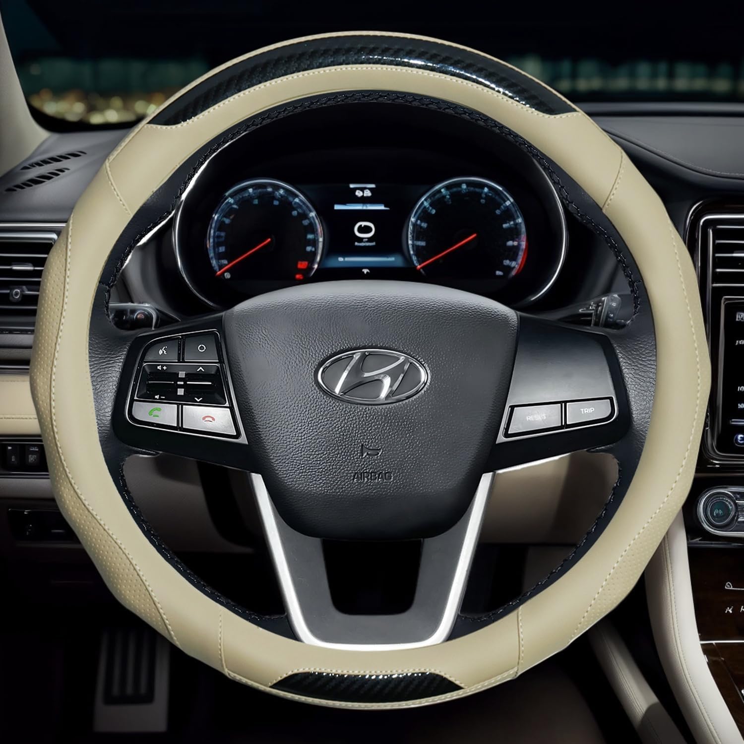 - Stylish Comfort Design: Elegant and classic steering wheel cover with 2 car coasters to dress up your car and make it less monotonous. The stylish leather and carbon fiber splicing, comfort grip design is beautiful and classy, showing details everywhere