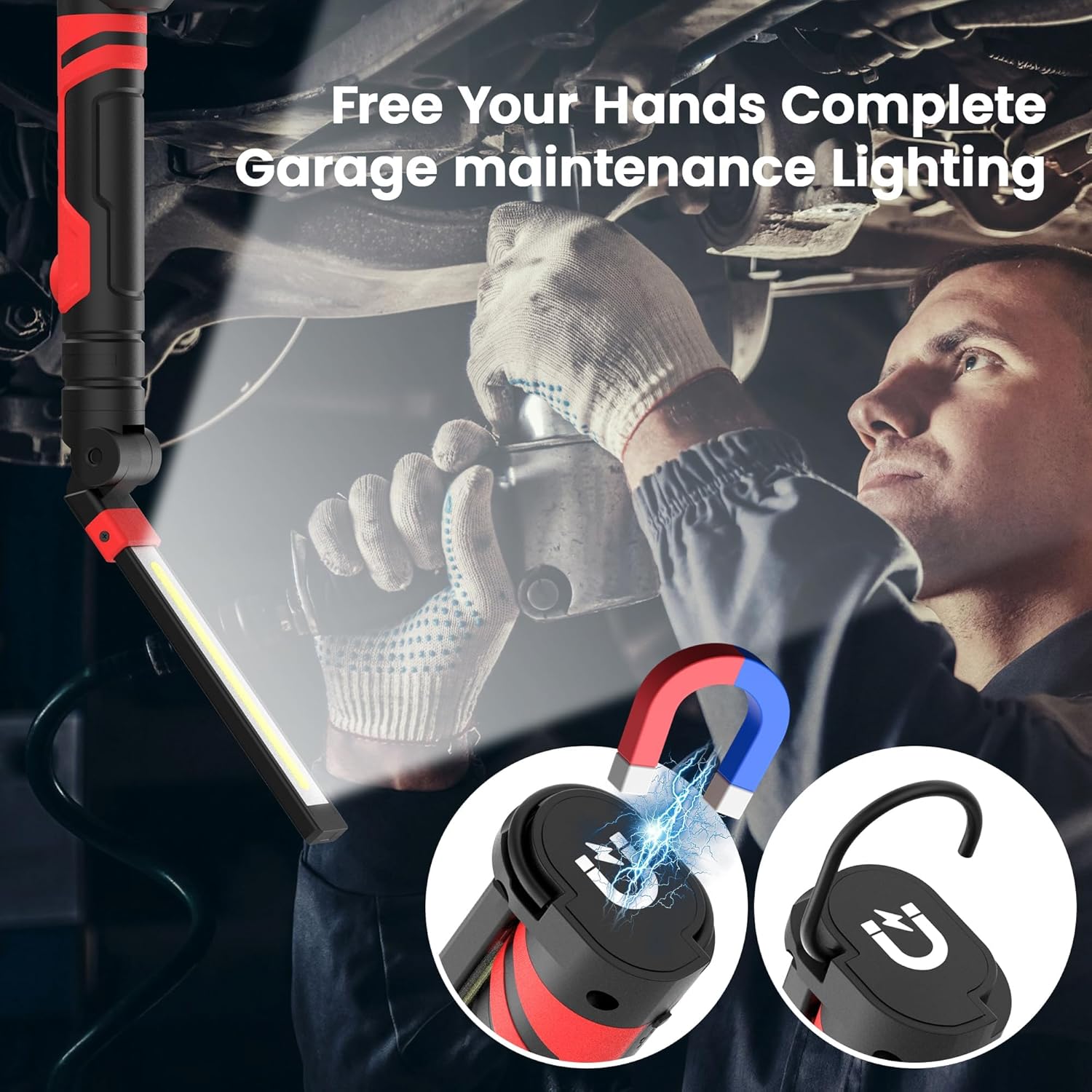 Rechargeable Work Light 2500mAh Magnetic LED Work Light Flashlight Mechanic Light Tool Gifts for Men Him, Foldable Lamp with Hook for Car Repair Emergency BBQ Grill