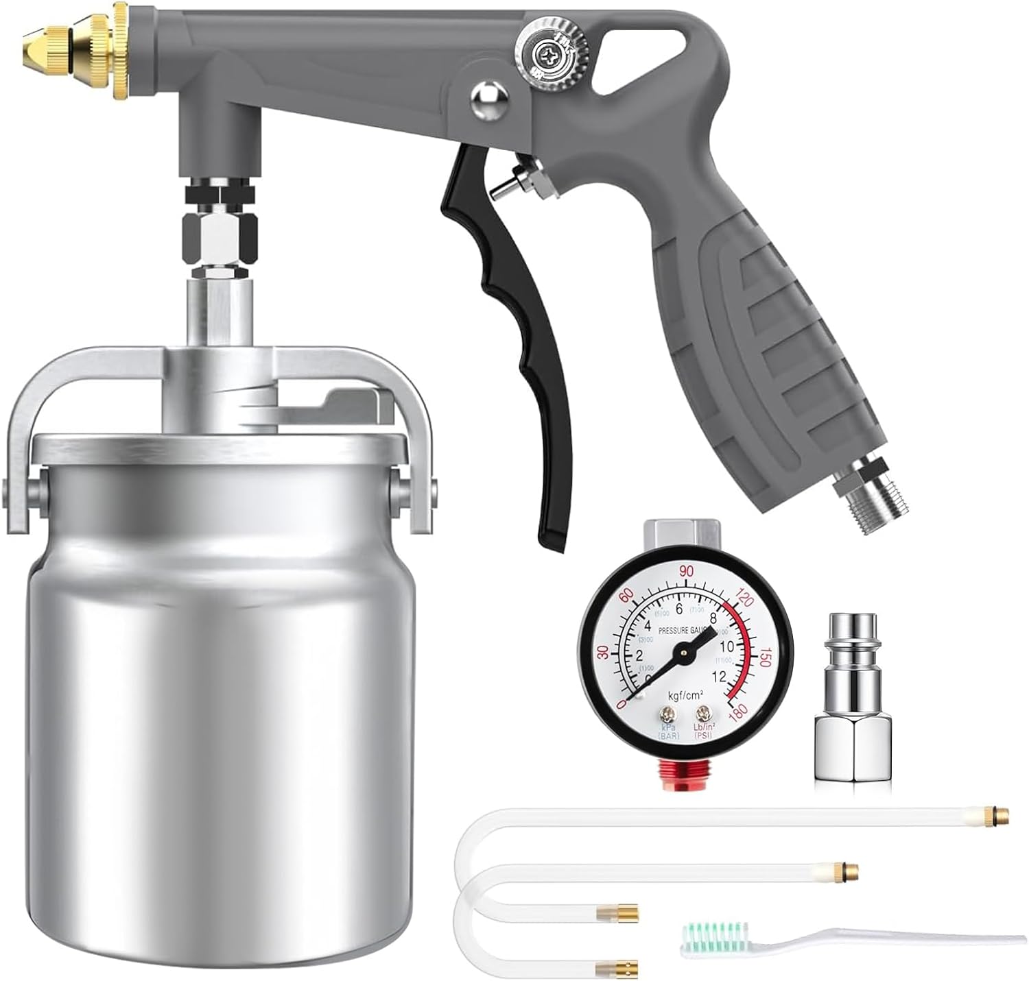 - 【Easy to Operate】This truck bed coating spray gun is designed with an easy-grip trigger handle for a secure grip and better control, improving convenience and ease of use; the pressure pot spray gun 1/4-inch NPS air intake provides smooth and efficient operation, allowing you to complete your spraying tasks with ease;