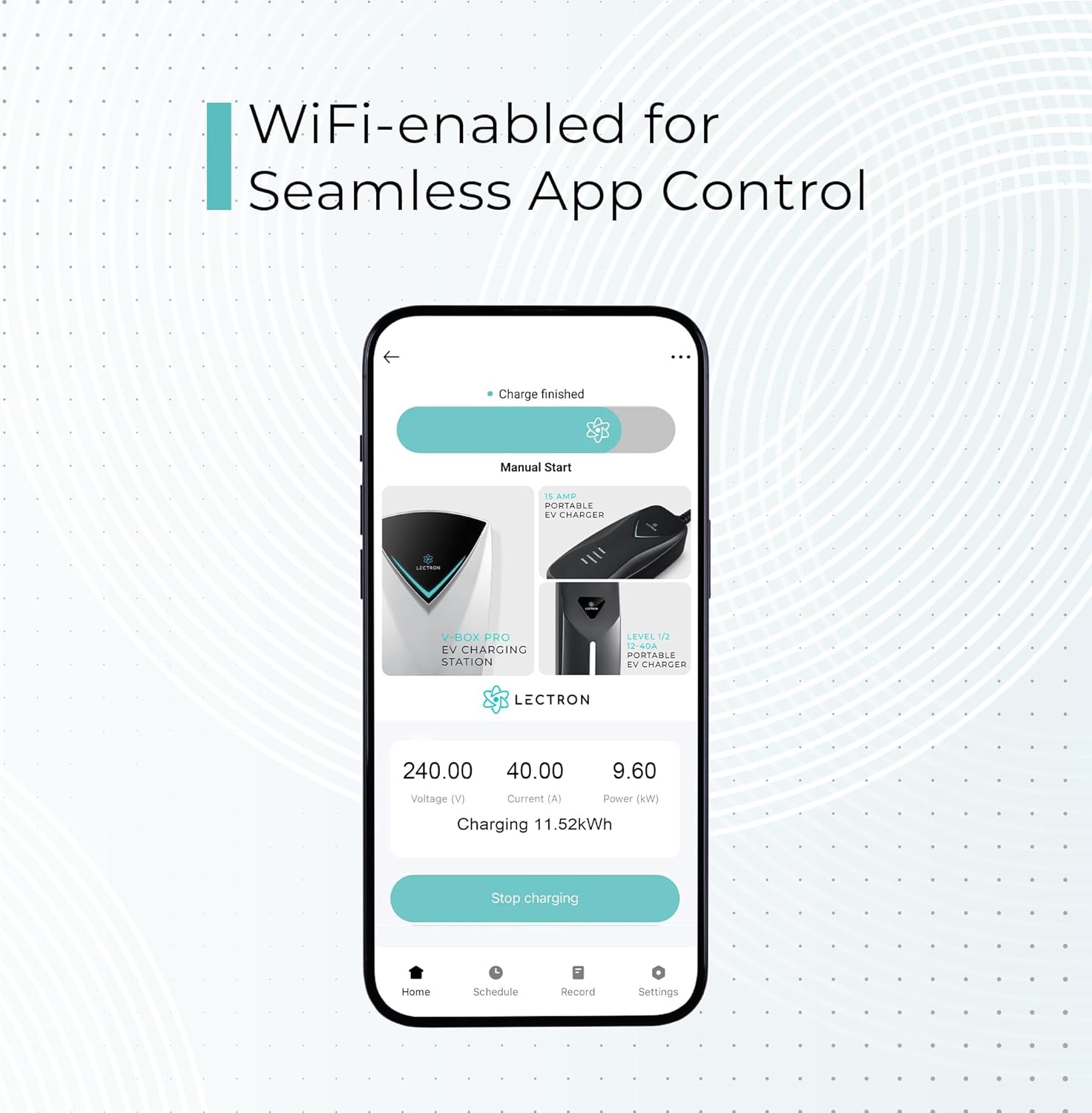 - SMART WIFI & APP CONTROL - This portable WiFi-enabled EV charger lets you monitor your charging status in real-time, schedule charging sessions, and control the amount of energy (kWh) you want to charge your EV, all through the Lectron App