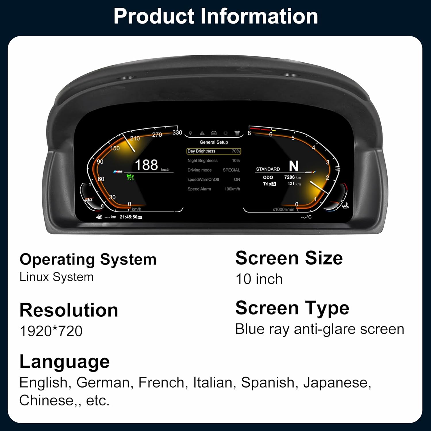 - š[Applicable Models] The LCD digital instrument cluster is precisely customized for BMW E84 (2006-2015) CCC CIC system. It is equipped with a 10 inch high-definition screen boasting a resolution of 1920*720. Supports all original features
