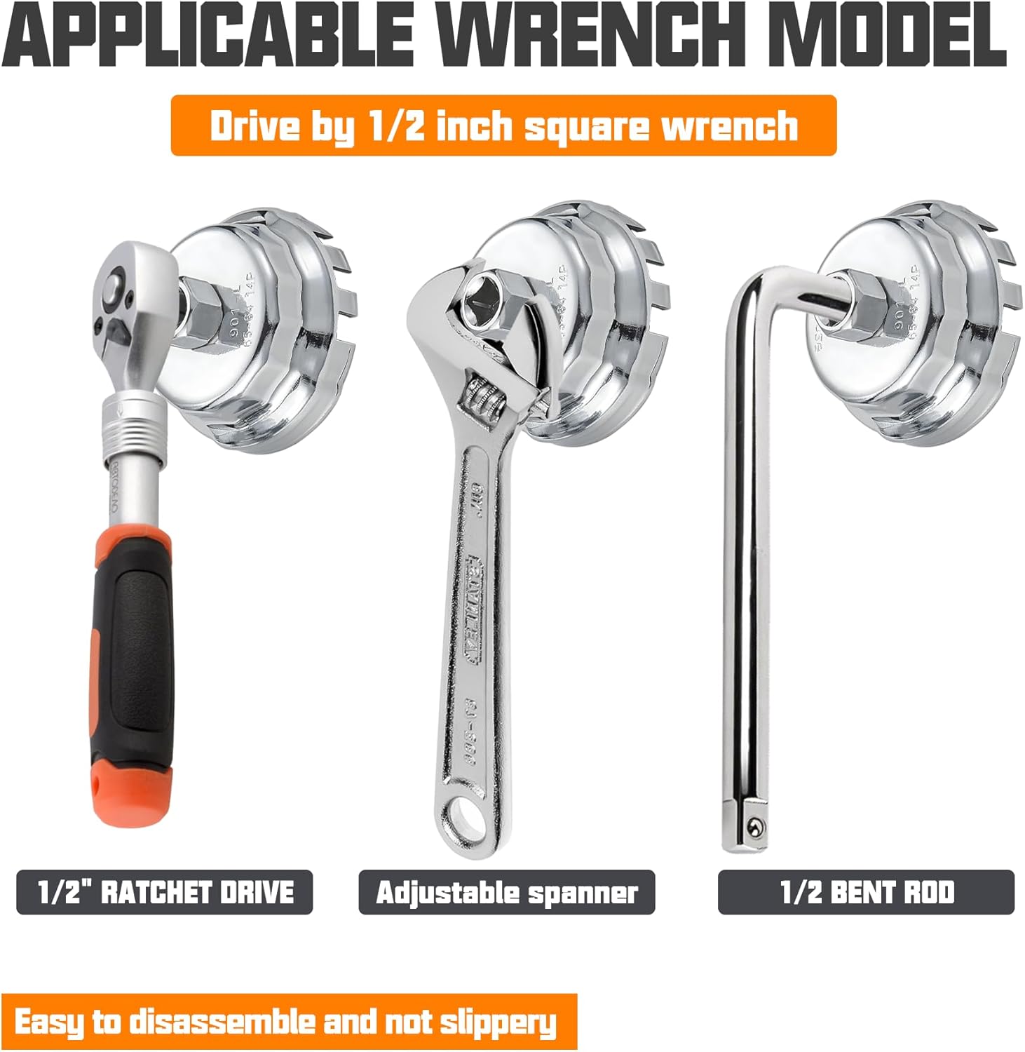 - UNIVERSAL FIT: Filter wrenches and sockets in various sizes fit popular filters from 2-1/2 inches to 4-1/2 inches to accommodate most car, truck, SUV and light truck applications