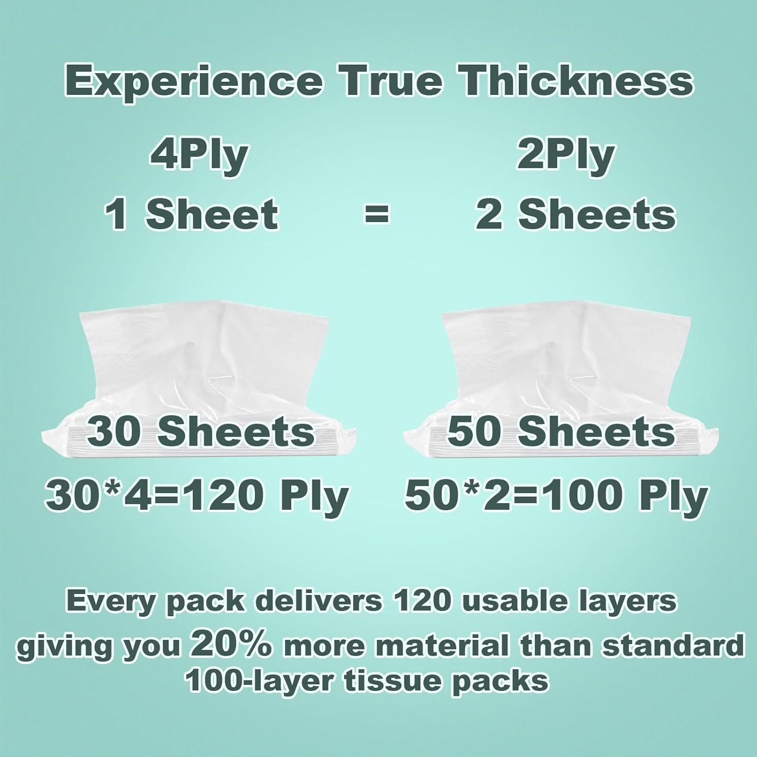 - 4-LAYERS TISSUES: These soft tissues adopts a four layer design with embossed design to ensure that it is not easily torn and provides a comfortable user experience. Each bundle of paper towels is individually packaged in transparent plastic packaging; There is also a slit opening in the middle for you to easily take out the tissue, perfect suit for daily use!