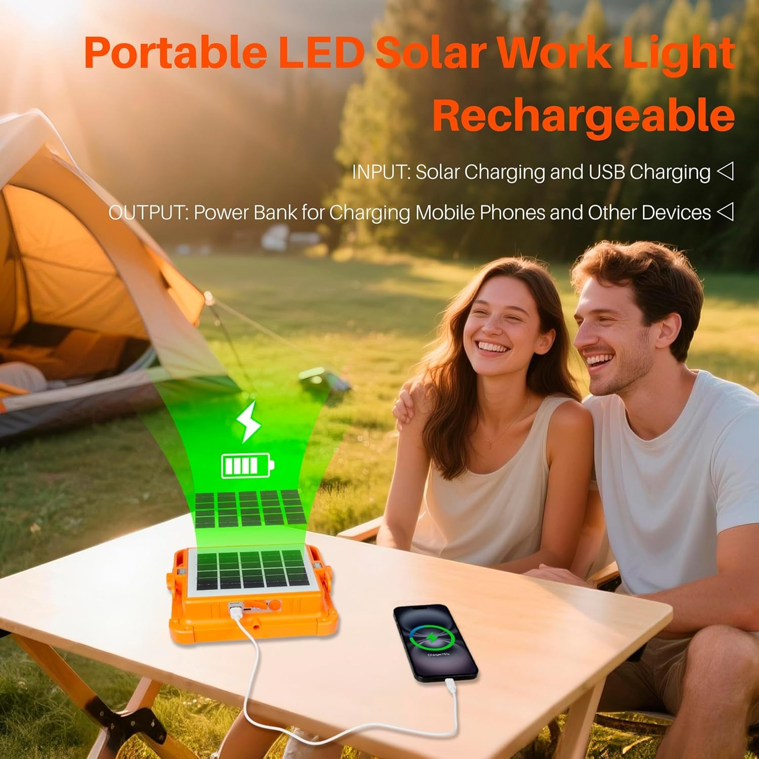 LED Solar Work Light with Magnetic, 5 Lighting Modes, IP66 Waterproof, Long Runtime, Portable Rechargeable Outdoor Working Light for Repair, Job Site, Camping, Emergency, Power Cut