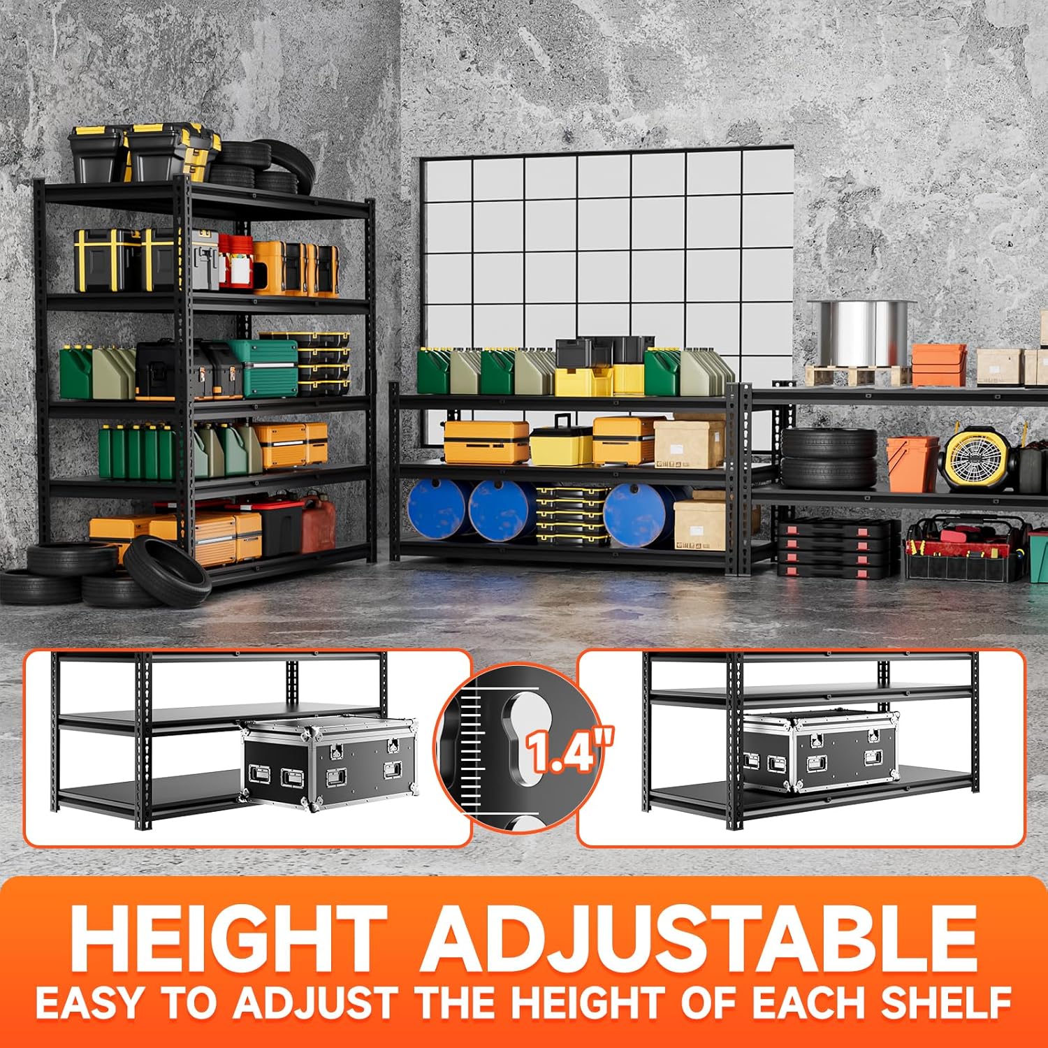 5 Tier 60”D X 24”W X 78”H Garage Shelves Heavy Duty 3000LBS Adjustable Metal Storage Shelves for Garages Shops and Basements (Black)